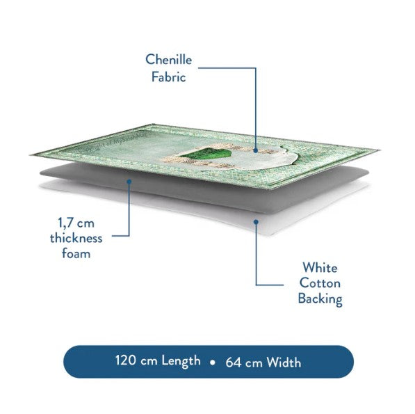 Made with luxurious chenille fabric and 1.3 cm thick foam padding, this padded prayer mat provides excellent support for your knees and head, helping reduce strain during daily prayers. The three-layer construction ensures durability, while the white cotton backing prevents slipping and keeps the mat stable on all surfaces. Measuring 120 x 64 cm, it offers a comfortable and practical prayer experience.