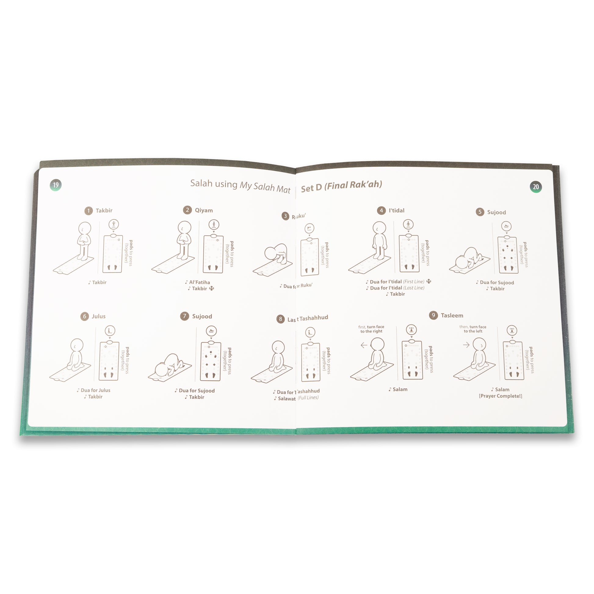 Also included is a Manual Book which includes; How to Perform Salah Guide, Duas, Surahs and a whole section dedicated to make notes.
